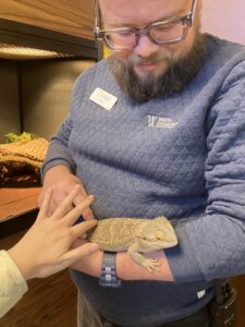 今回、施設を案内してくれたのは、ゲストエクスペリエンス&イベント・コーディネーターの John さん。忙しい中にも関わらず、快く出迎えてくれ、館内を丁寧に説明してくださいました。John さんは、来場者対応やフィールドトリップの案内を担当するだけでなく、施設全体の「体験価値」を現場で形にする役割を担っています。「初めてペットを迎える大人の方や、動物について学びに来る子どもたちが、動物を好きになる瞬間に立ち会えることがとても嬉しい!」と語ってくださいました。