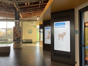 私が実際に訪問して最もよく感じたこと。それは、この施設は何よりも「教育」に重きを置いているということです。動物を救うこと以上に、人が動物を正しく知ること。教育こそが最も社会を救うことにつながると考えていらっしゃいました。館内には、子ども向けの校外学習やスカウト活動、大人も楽しめるタッチスクリーン型の教育コンテンツが並んでいます。保護された動物たちのストーリーが見られたり、純粋にゲームを楽しめたりします。例えば、昨年譲渡に成功したマチルダという犬。こちらの施設にやってきた時、マチルダは癌を患っていました。その為、こちらの施設で腫瘍を取り除き、必要な医療処置を行ったのち、めでたく里親さんがみつかったそうです。訪問客は、小学生くらいの年齢の方が多いものの、中学、高校生くらいの方も来館されるとのこと。また、近郊の大学とはパートナー関係があり、インターシッププログラムを提供しているそうです。施設の中だけではなく地域社会とも連携しながら、保護動物の現状を広めていく仕組みが整っていました。