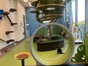 This space is designed for those who want to interact with animals but are not planning to adopt right away. In this room, you’ll find cats that are comfortable around people and generally get along well with other cats. I had the chance to spend time with three of them—Gadget, Ginger, and Debbie!